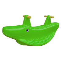 Gangorra confeccionada em polietileno rotomoldado com aditivos UV que permitem ficar exposto ao tempo sem perder a coloração, assento anatômico em formato de minhoca com pegadores em polietileno sem o uso de adaptações de manoplas e madeiras, olhos confeccionados em plástico acrílico com rosca de encaixe e base reforçada para apoiar os pés permitindo um balanço suave e uniforme.
