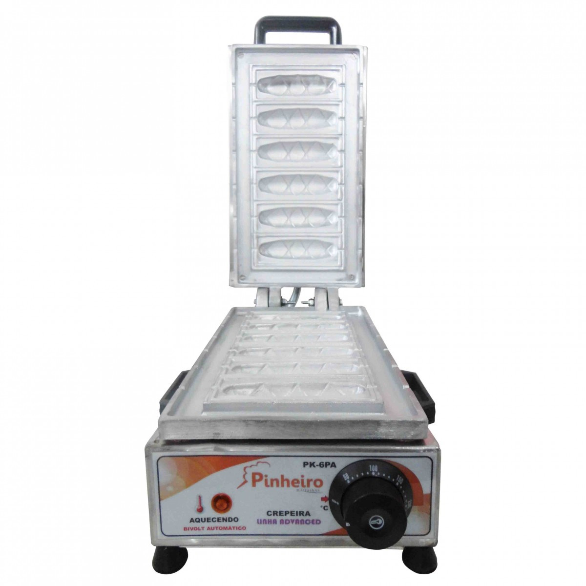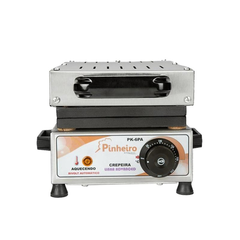- Máquina de alta produção, capaz de produzir 6 crepes no formato 4,5 x 13 cm;