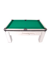 Mesa usada de pebolim oficial revestida em fórmica com ferros passantes para até 04 jogadores.