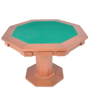 Mesa de pebolim com estrutura confeccionada em madeira maciça cedrinho em tom de mogno e com 06 pés, campo de jogo em 5mm de espessura na cor verde, bonecos em plásticos e tampinhas amortecedores nos ferros para evitar acidentes.
