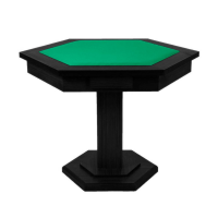 Mesa de pebolim nas medidas oficiais com estrutura confeccionada em madeira maciça cedrinho em tom preto e com 04 pés, campo de jogo em MDF de 6mm de espessura na cor verde, bonecos em alumínio e ferros dos bonecos pintados em Epoxi.