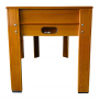 Mesa de pebolim nas medidas oficiais com estrutura confeccionada em madeira maciça pinus e com 04 pés em "L", campo de jogo em MDF de 6mm de espessura na cor verde, giro do goleiro em 360º, bonecos em alumínio e ferros dos bonecos pintados em Epoxi.