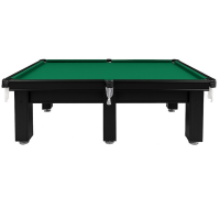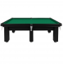 Mesa de sinuca com medidas externas 2,70x1,43m confeccionada em madeira maciça cedrinho no tom preto, campo de jogo com 03 pedras em ardósia polida e tapeçadas com tecido acrílico Thais na cor verde, modelo com 06 pés, caçapas em redinhas, pés niveladores para melhor nivelamento da mesa e sem acessórios para jogo.