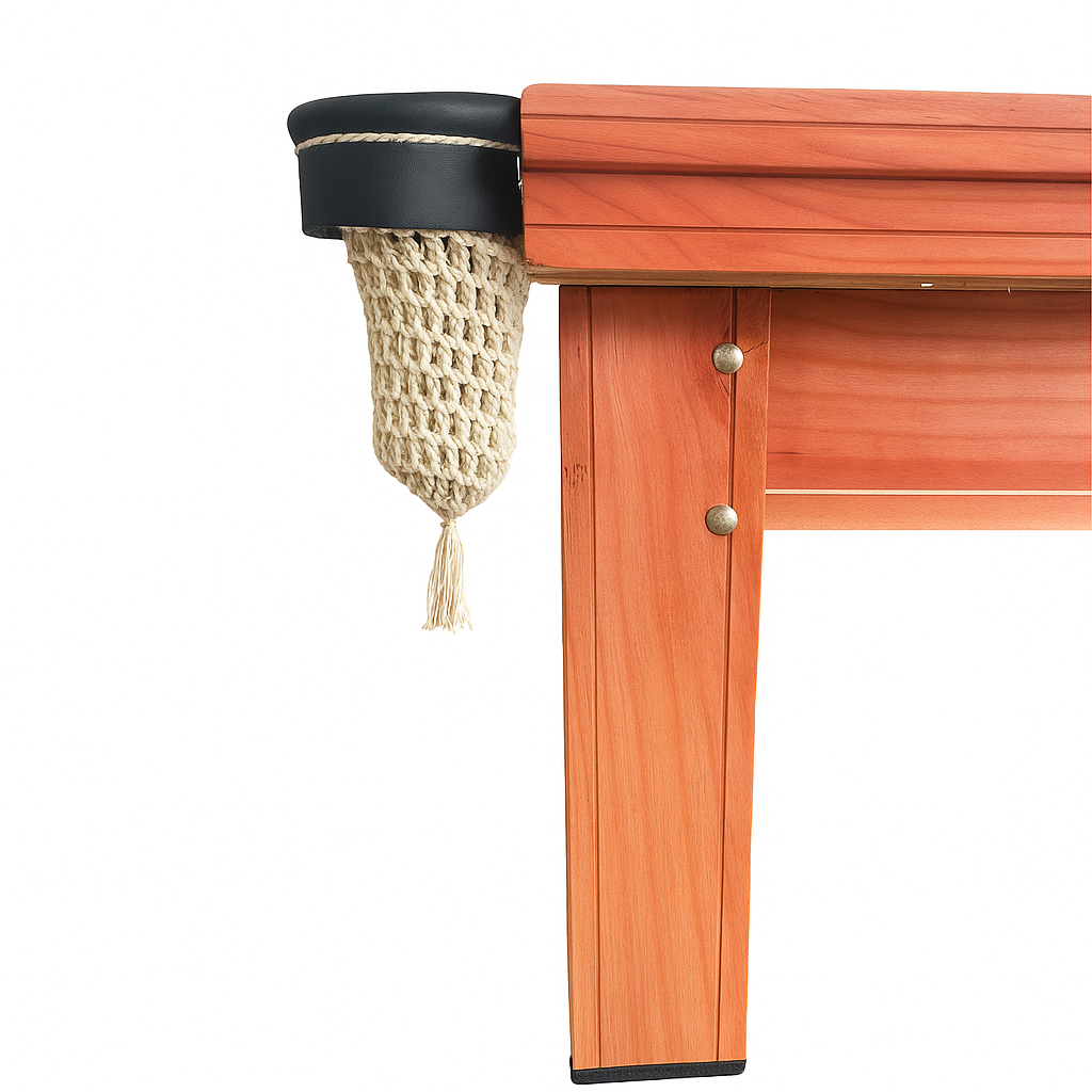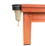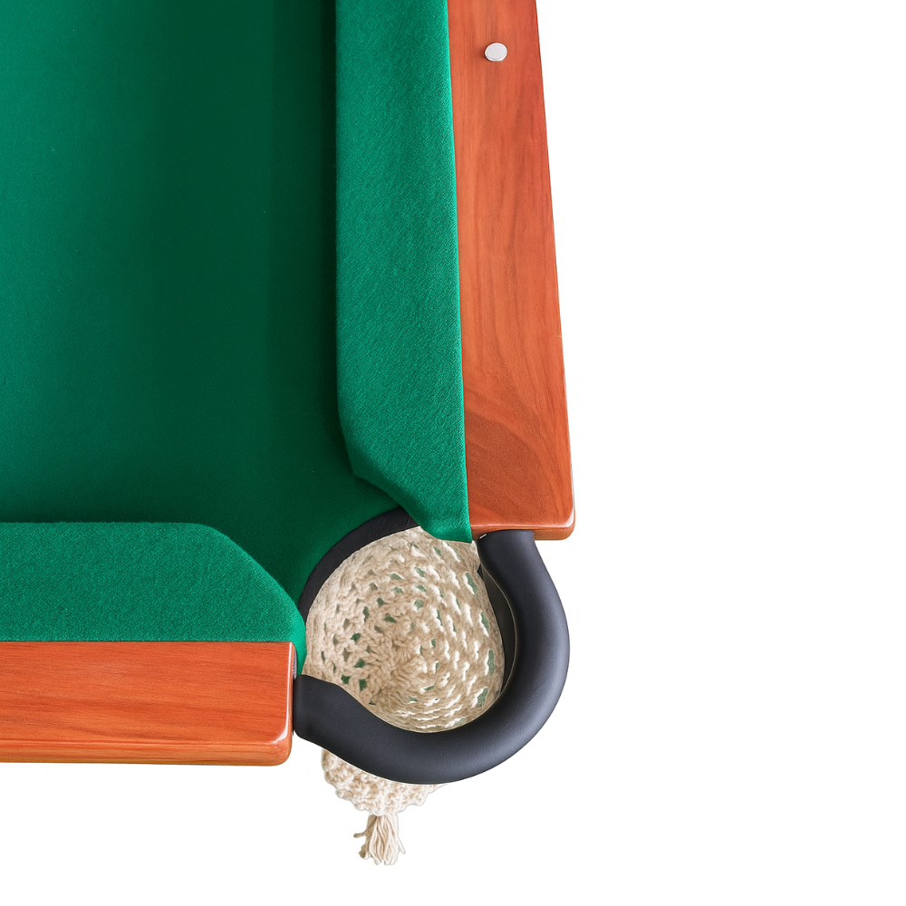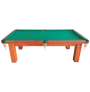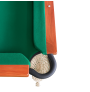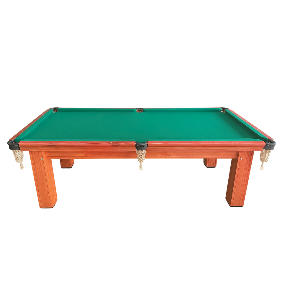 Mesa de sinuca semioficial com medidas 2,20x1,20m confeccionada em madeira maciça pinus, campo de jogo em pedra ardósia polida e tapeçada com tecido acrílico Thais na cor verde, modelo com 04 pés, caçapas em redinhas, pés niveladores para melhor nivelamento da mesa e sem acessórios para jogo.