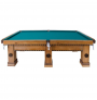 Mesa de sinuca profissional com 6 pés e campo de jogo em pedra ardósia 3 cm de espessura e confeccionada em madeira maciça com prancha de 4 cm de espessura, tapeçada em lã na cor verde e borracha Tavares.