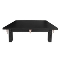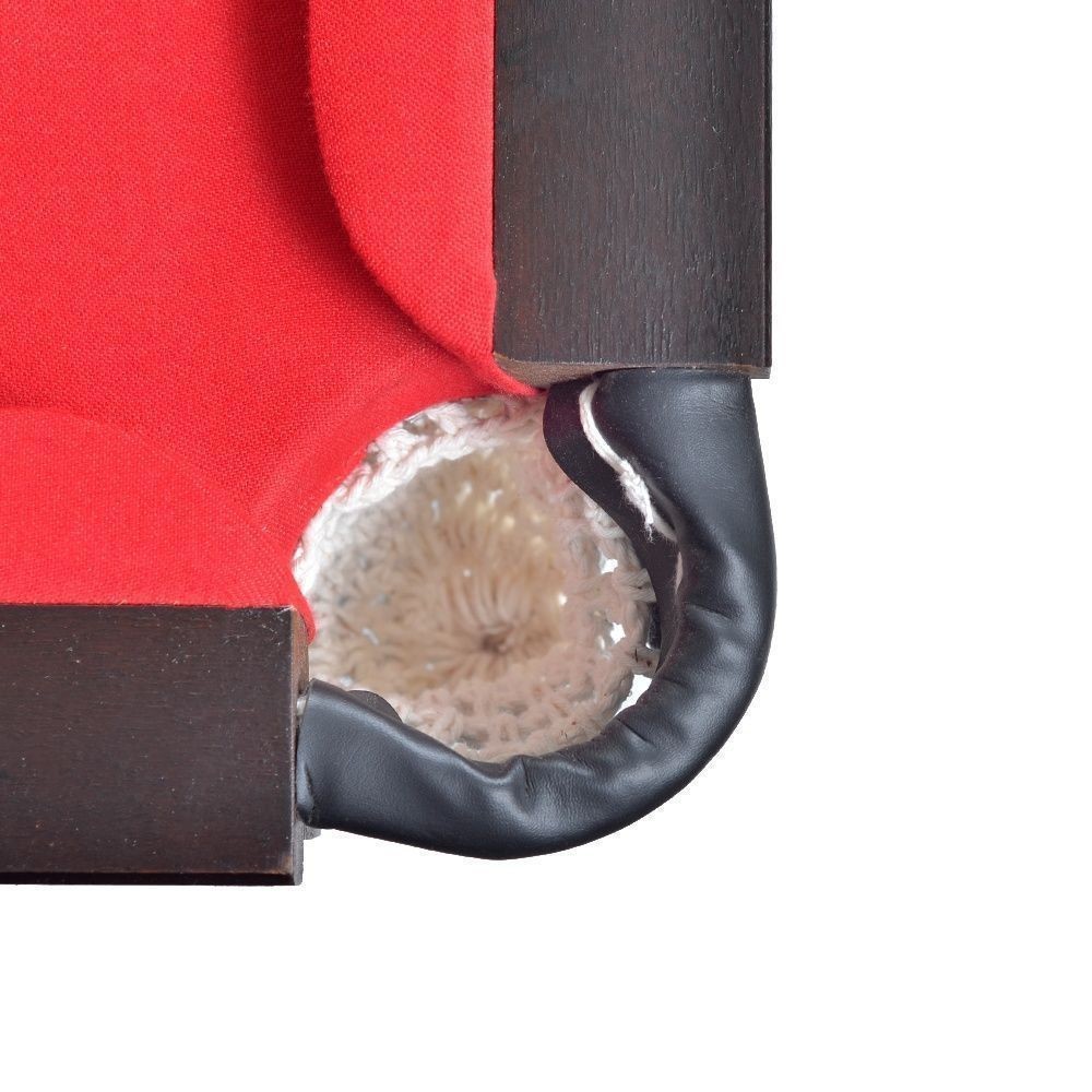 Mesa de sinuca semioficial com medidas 2,20x1,20m confeccionada em madeira maciça cedrinho em tom preto, campo de jogo em pedra ardósia polida e tapeçada com tecido acrílico Thais na cor vermelha, modelo com 04 pés, caçapas em redinhas, pés niveladores para melhor nivelamento da mesa e sem acessórios para jogo.