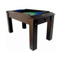 Mesa de tamancobol confeccionada em MDF revestido em ébano, com os ferros (varões) pintados e 4 (quatro) rebatedores em plástico, campo verde com 4 (quatro) pés em madeira.