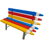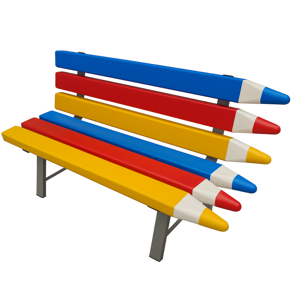 Assento e encosto confeccionados em plástico polietileno rotomoldado com aditivos UV que permitem ficar exposto ao tempo sem perder a coloração, assento e encosto em formato de lápis cilíndrico,