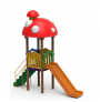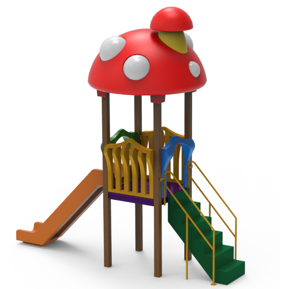 O brinquedo também conta com travas de fixação em sua base, permitindo que seja chumbada ou fixada diretamente ao solo conforme as exigências de segurança e instalação.